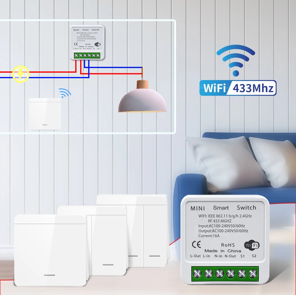 The relay controller is wifi+rf,the wall switch is rf only.Wall switch itself cannot control lights on off.It needs to work with wifi+rf receiver together.please note this before you purchase.
