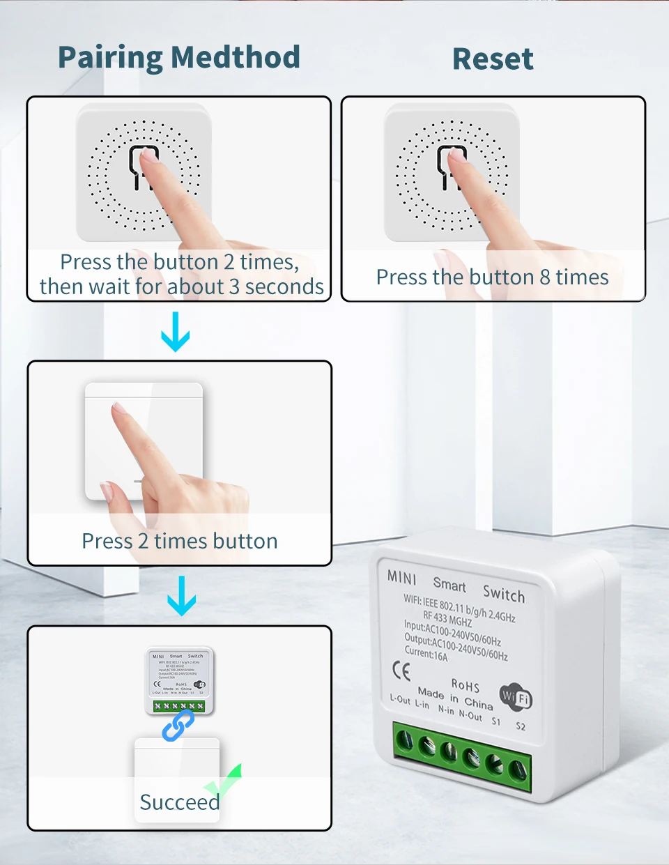-Wireless Switch Control or Remote Control + APP Control + Voice Control